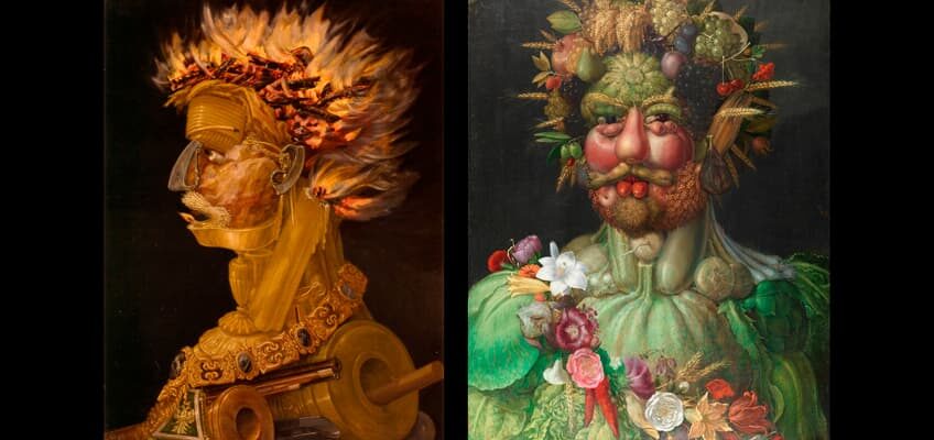 Obra 63. El Fuego y El Vertumno, obras de Giuseppe Arcimboldo, un pintor con un estilo muy peculiar.